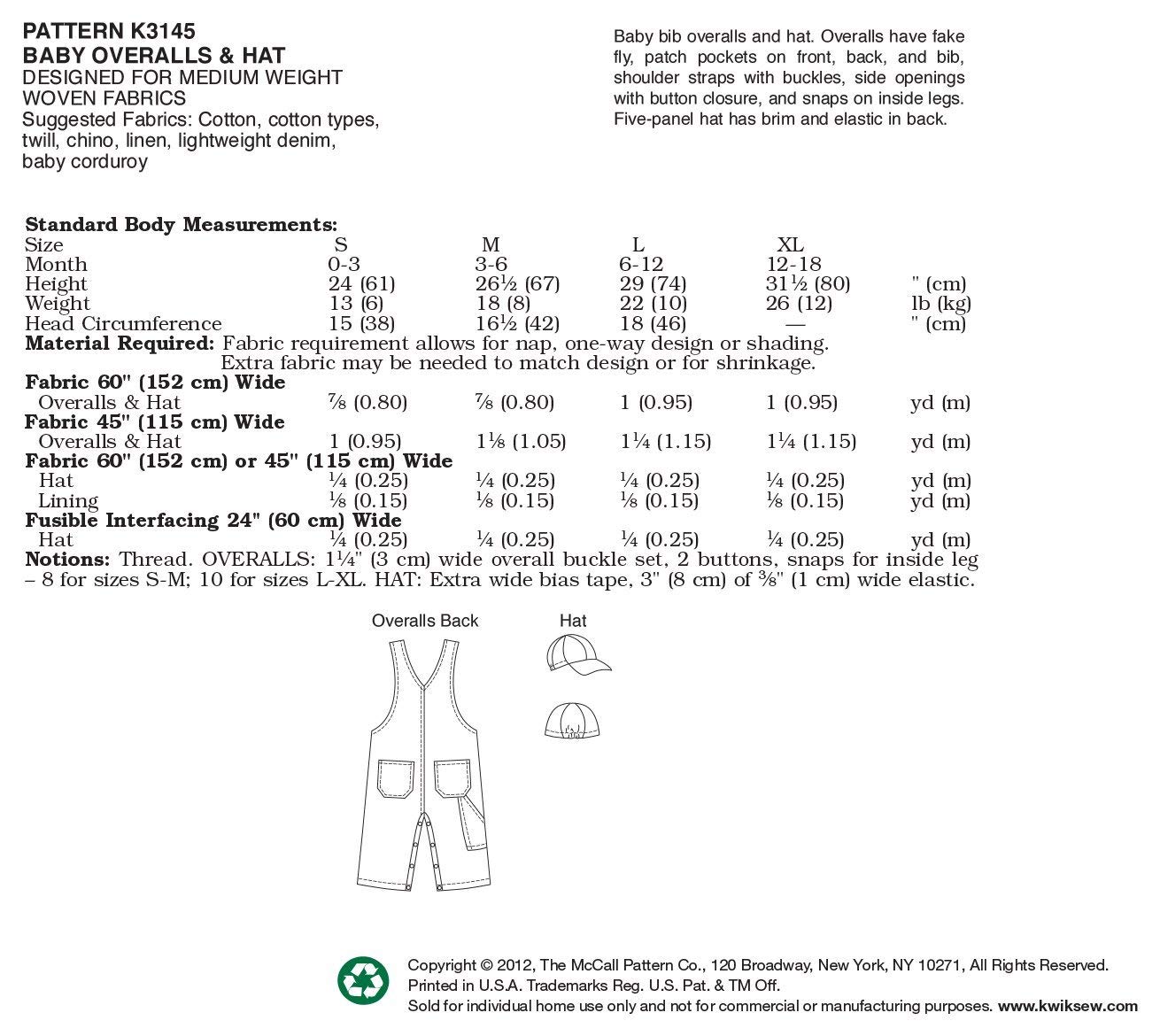 Kwik Sew K3145 Overalls And Hat Sewing Pattern Size S M L Xl Amazon Ae Arts Crafts